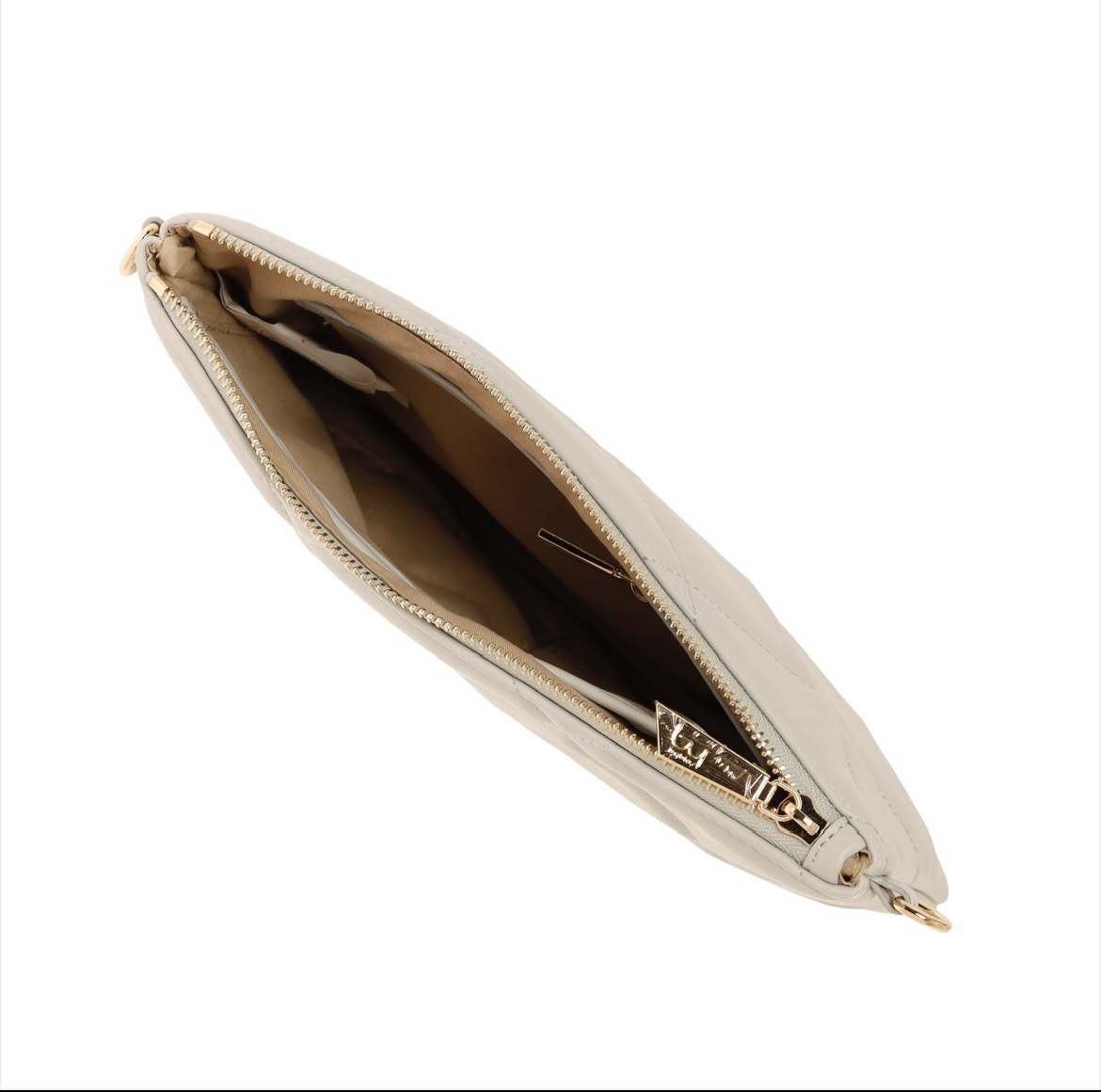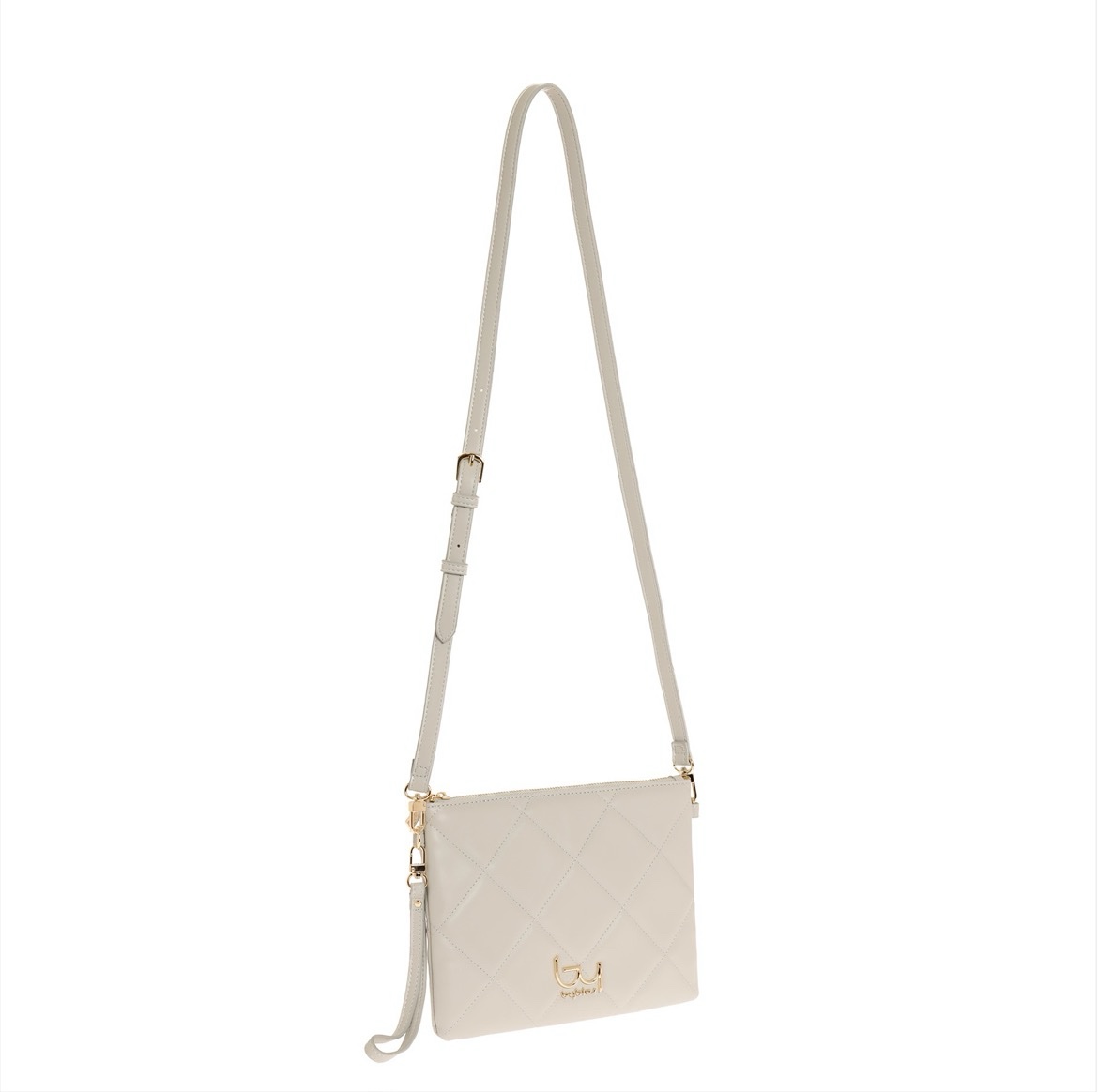 Borsa a tracolla Byblos Dorado perla,in ecopelle trapuntata, caratterizzata da cuciture a rombi, dettagli in metallo dorato e logo frontale. Elegante e versatile, perfetta per completare look quotidiani o più raffinati.